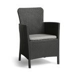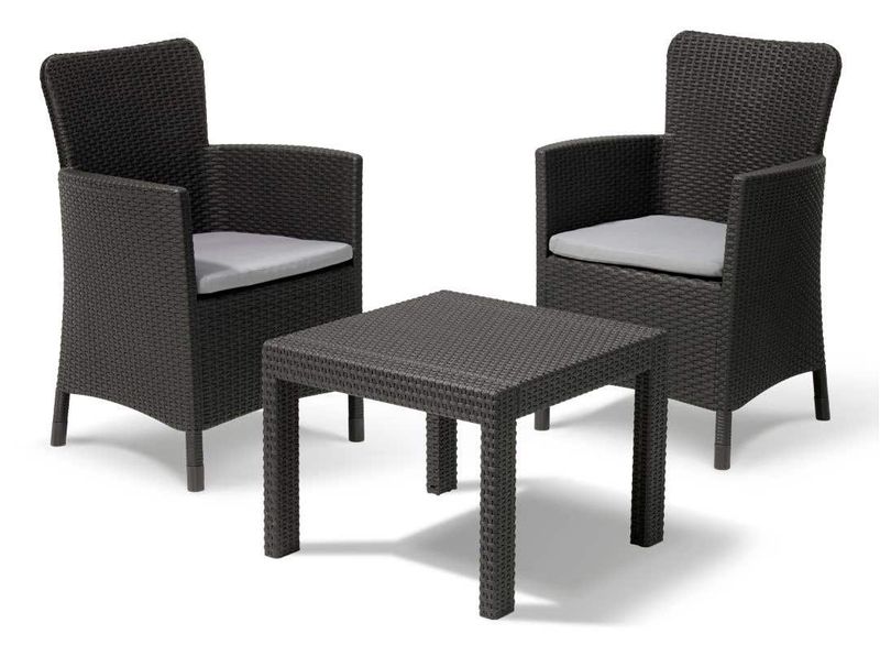 Salvador es un conjunto de balcón con una textura superficial similar al ratán, que incluye dos sillones y una mesa cuadrada. Los respaldos ergonómicamente perfilados y los suaves cojines de los sillones harán que cualquier momento de relajación al aire libre sea muy agradable. El conjunto de muebles fácil de limpiar es duradero y resistente a las condiciones climáticas desfavorables y los rayos UV.