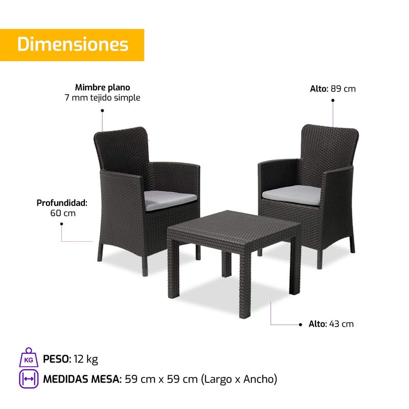 Juego De Balcón Salvador Mesa + 2 Sillas Simil Ratán 221307