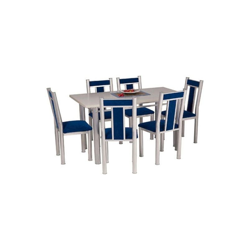 Juego de comedor de mesa mas seis sillas, mesa con tapa de melanina 1.40mt x 0.80mt con base 3' y pintura epoxi; sillas con caño 2' pesado, tapizado microfibra/vinilico y pintura epoxi.