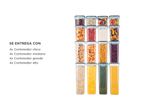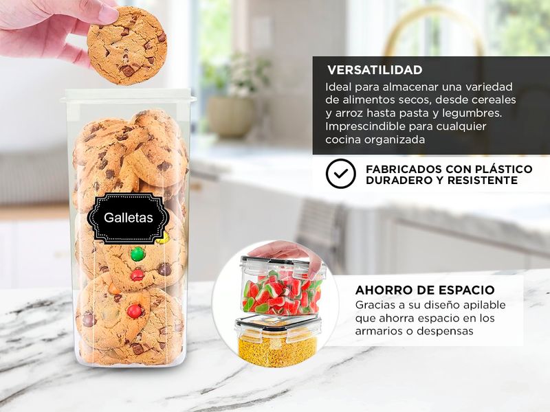 Ideal para almacenar una variedad de alimentos secos, desde cereales y arroz hasta pasta y legumbres, este juego de contenedores es imprescindible para cualquier cocina organizada.