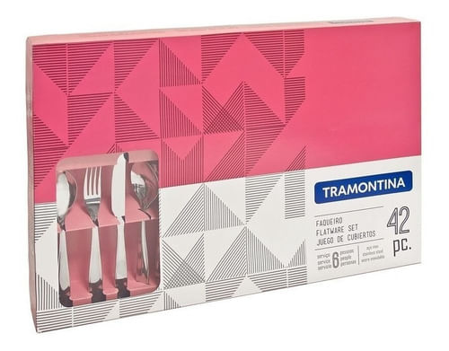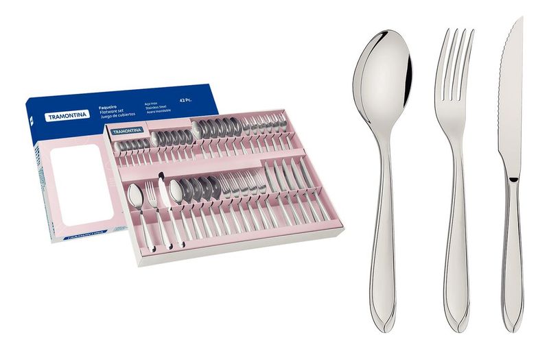 El juego de cubiertos con cuchillos para asado de acero inoxidable de 42 piezas de la línea Laguna cuenta con la calidad y buen gusto que solo Tramontina puede ofrecer. Con 42 piezas hechas totalmente de acero inoxidable, poseen características propias. Las cucharas, cuchillos y tenedores son diseñados para brindar más comodidad en su uso. Los cuchillos cuentan con la característica de templabilidad, garantizando mayor durabilidad al filo de corte y mayor resistencia a la corrosión. Además no arañan la porcelana. El juego de cubiertos viene con cuchillos especiales para el uso en asados. Son piezas versátiles que se pueden usar en cualquier ambiente y le dan un toque de buen gusto a su mesa, ya que cuentan con una terminación brillante y detalles en el mango. ¡Haga que su cocina sea aún más hermosa con estas piezas prácticas y llenas de estilo!