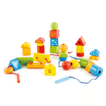 * 2 cordones gruesos para ensartar, con terminaciones de madera más gruesa para facilitar el trabajo de ensartado a los más pequeños