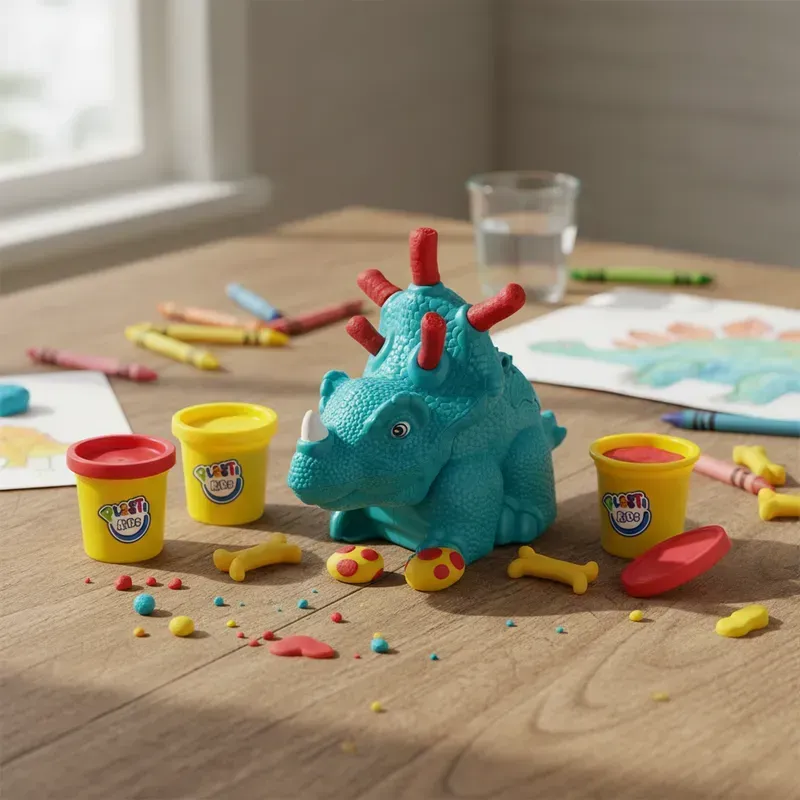 ¡Crea tu propio mundo prehistórico con el Juego de Masa C/Accesorios Mundo Dino Plastikids Rinoceronte! Este set incluye masas de colores vibrantes y accesorios que permiten a los niños modelar figuras y escenas de la era de los dinosaurios. Con un rinoceronte como protagonista y moldes integrados en sus accesorios, los pequeños pueden dar rienda suelta a su imaginación, creando sus propios animales y huellas de dinosaurios.
