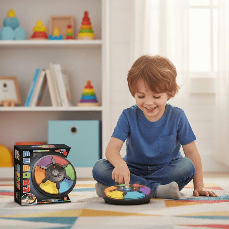 El Juego de Memoria de Luz y Sonido Grande ofrece una propuesta clásica y efectiva para entrenar la concentración y la memoria de los chicos. Su disco iluminado de 6 colores presenta secuencias que deben repetirse en el orden correcto, aumentando la dificultad a medida que avanza el juego. Una forma sencilla y divertida de estimular habilidades cognitivas mientras juegan.
