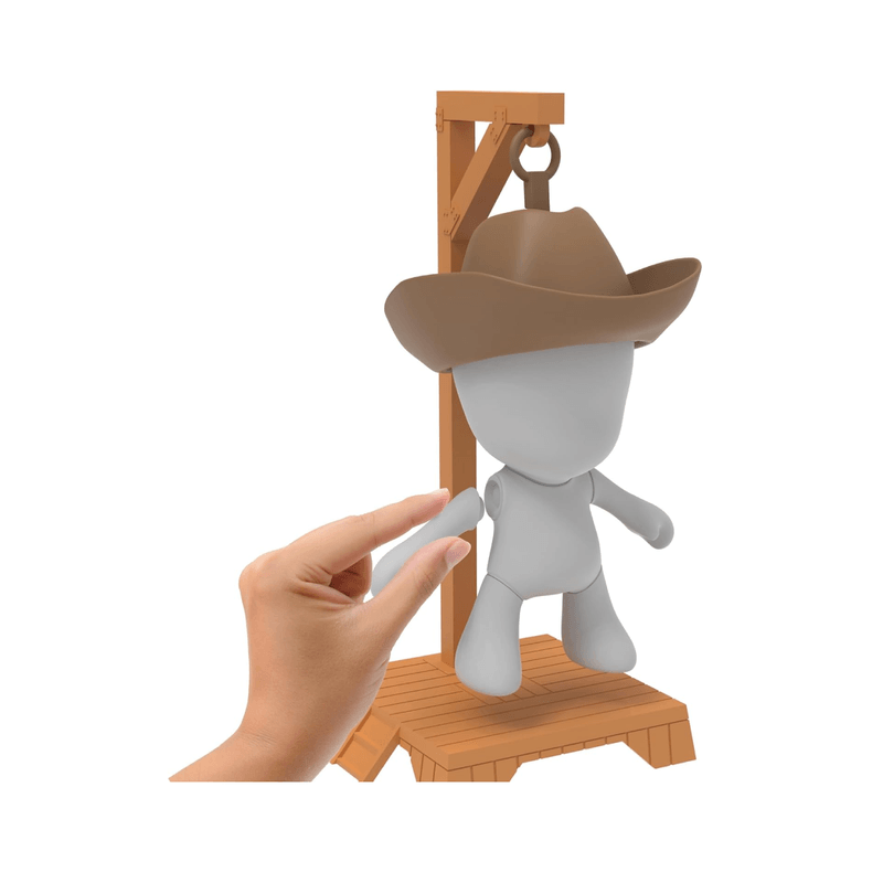 Incluye: 1 torso, 1 cabeza, 2 brazos, 2 piernas, 1 sombrero, fichas con letras, 1 base del ahorcado, 1 base de plástico para fichas.