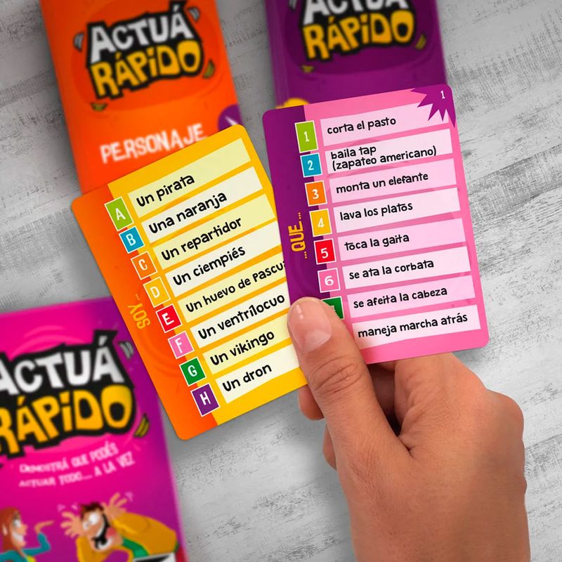 Diversión con mímicas y gestos: Forma equipos y adivina combinaciones hilarantes de personajes y acciones, como "una papa haciendo nado sincronizado" o "un gusano con un piercing en el ombligo".