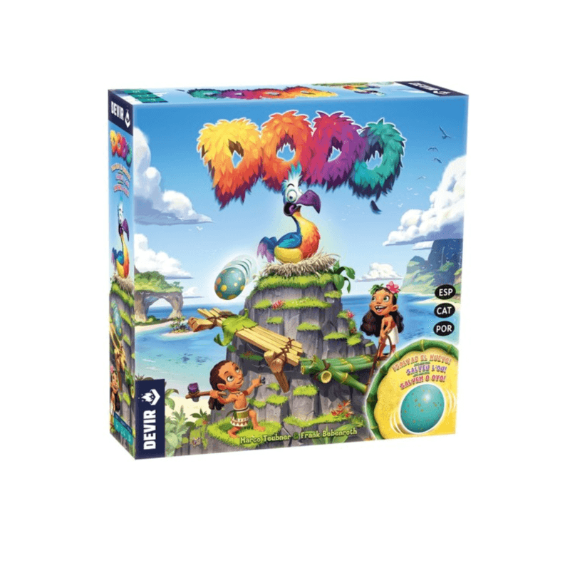 ¡Salven al dodo! Dodo es un divertido juego de mesa cooperativo donde el objetivo es trabajar en equipo para rescatar un huevo de dodo que se desliza por las laderas de una montaña. Usando la memoria y la velocidad, los jugadores deben encontrar las piezas correctas para construir un puente y un embarcadero antes de que el huevo caiga al vacío. Un juego lleno de emoción, perfecto para que los más pequeños aprendan a colaborar y a ejercitar su memoria.
