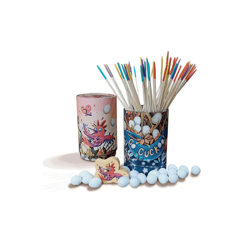 ¡Que no se caigan los huevos! GO CUCKOO! es un emocionante juego de destreza donde los jugadores compiten por ser los primeros en colocar todos sus huevos en un nido en constante construcción. En cada turno, deberás colocar palos con cuidado, y si logras que los colores coincidan, podrás añadir uno de tus huevos. Pero ten cuidado, porque si un palo o un huevo se cae, tendrás una penalización. Un juego ideal para los más pequeños, que fomenta la motricidad fina y la concentración.
