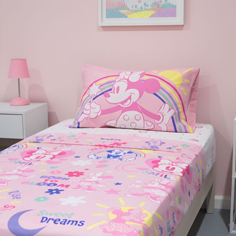 El juego de Sabana incluye tres piezas. Cada pieza tiene un diseño único y divertido con su personaje favorito Minnie Mouse. La funda de almohada es reversible para combinarla como quieras. Máxima suavidad para descansar, jugar y soñar.