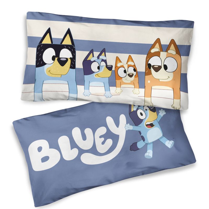 El juego de Sabana incluye tres piezas. Cada pieza tiene un diseño único y divertido junto a Bluey y Ringo. La funda de almohada es reversible para combinarla como quieras. Su nueva tela ultra soft brinda el máximo confort de suavidad al tacto.