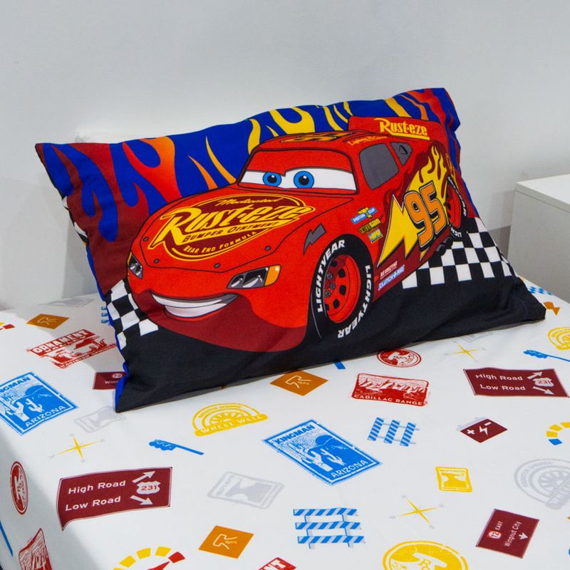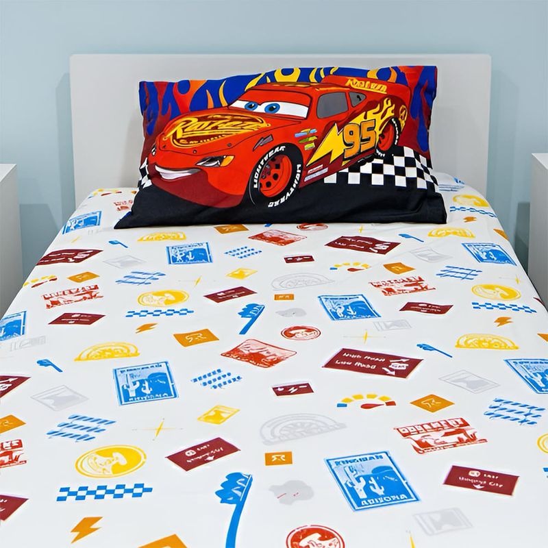 El juego de Sabana incluye tres piezas. Cada pieza tiene un diseño único y divertido con los amigos del Rayo Mc Queen. La funda de almohada es reversible para combinarla como quieras. Su nueva tela ultra soft brinda el máximo confort de suavidad al tacto.