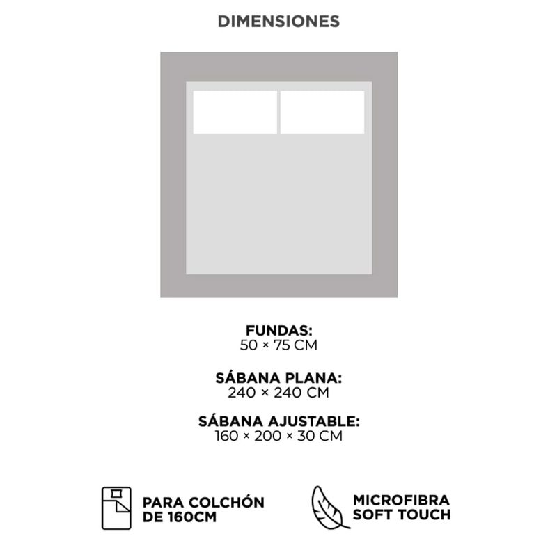 Incluye sábana plana, sábana ajustable y dos fundas de almohada, ideal para armar la cama sin necesidad de comprar piezas adicionales.