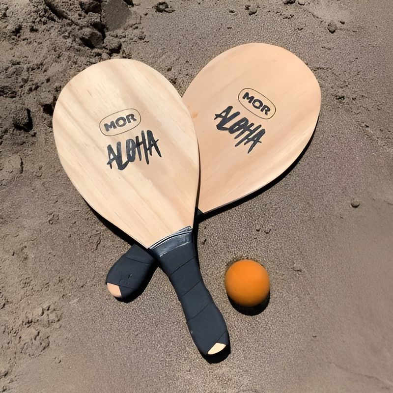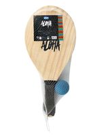 Para entretener a grandes y pequeños en la playa las Paletas de Madera Aloha son una gran opción. El kit se compone de dos paletas de madera con mangos recubiertos de E.V.A para mayor comodidad en las manos y una pelota de goma para iniciar el juego.