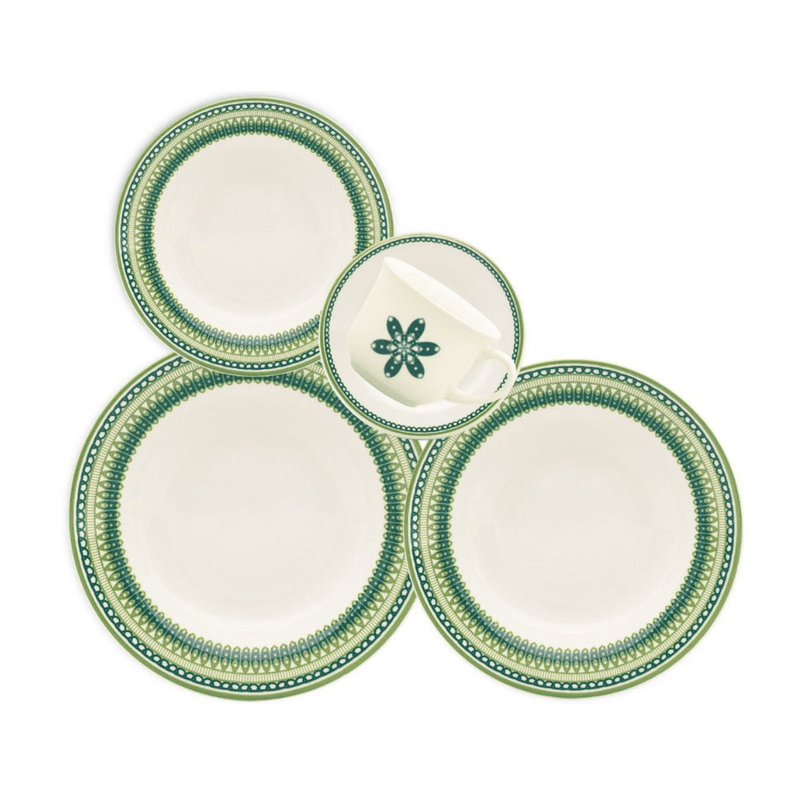 - 30 piezas: 6 playos, 6 hondos, 6 postre, 6 tazas de te con plato