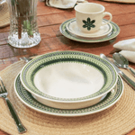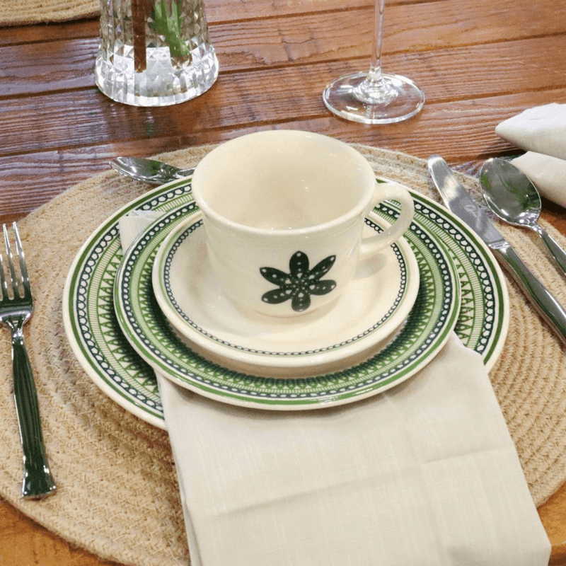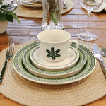 Del campo a la mesa. La colección Donna Campestre presenta una gama de elementos que caracterizan la apacible vida del campo, donde plantas, follaje y flores embellecen la vida cotidiana. La combinación de tonos verdes y diferentes formas representa la variedad de la flora brasileña.