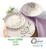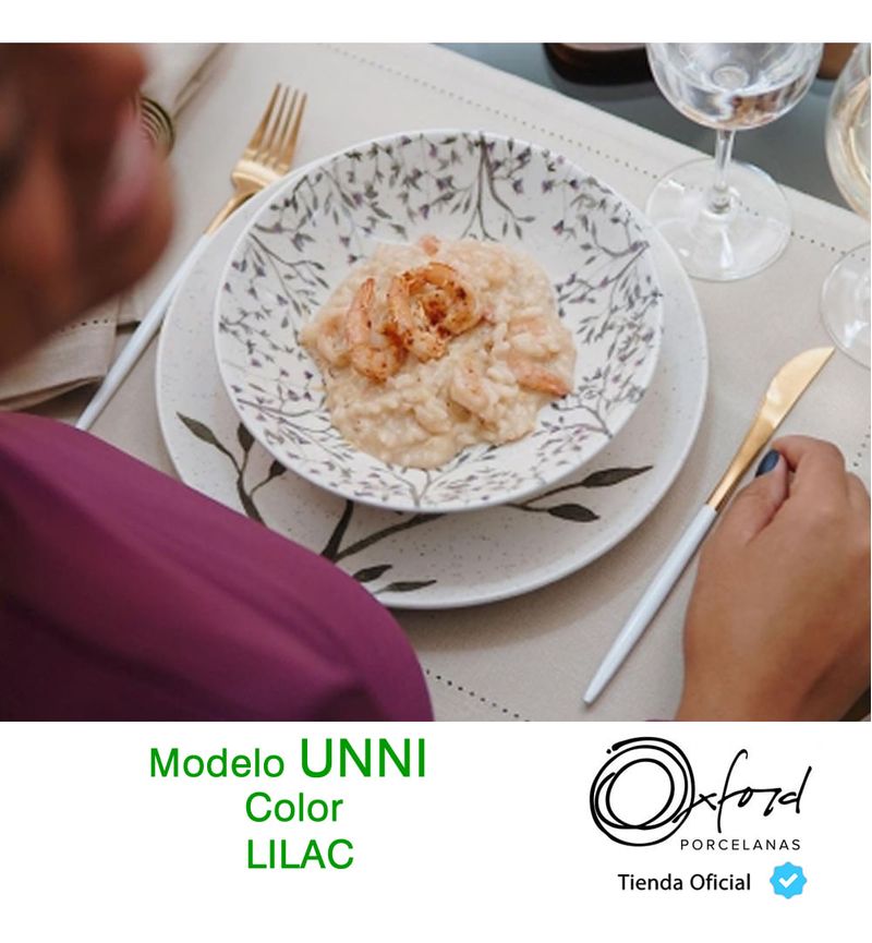 La colección Unni Lilac tiene como protagonista la lavanda, una planta que cada vez se ha ganado un lugar más en la decoración, en la industria cosmética, en productos terapéuticos y ahora también en las mesas. ¡El color lila, presente en sus flores, aporta toda la delicadeza y buenas sensaciones a los platos! La copa de color liso añade un toque más contemporáneo a la colección.