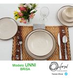 El viento en la cara, el sonido del mar y la arena en los pies, esta es la brisa perfecta del verano. Pensando en llevar esta sensación al hogar, la colección Unni Brisa está decorada con pequeños detalles en negro por toda la pieza, representando granos de arena. Los bordes de cada artículo de la colección están aplicados con un fino hilo marrón, que recuerda a materiales naturales como el bambú y la cuerda.