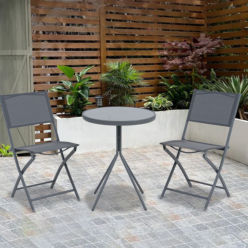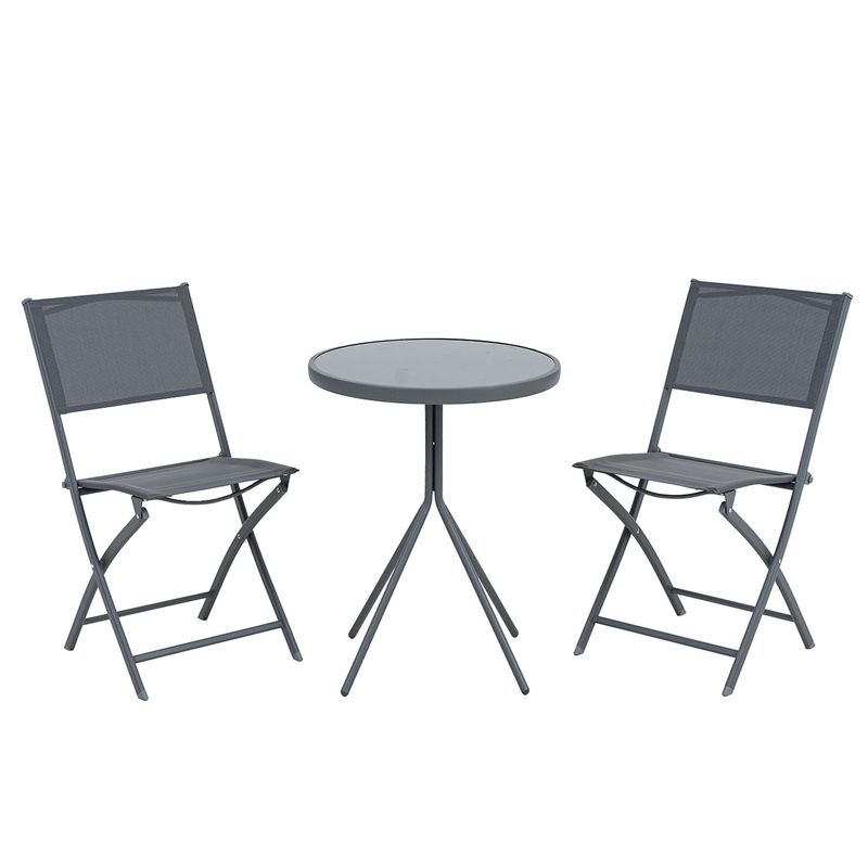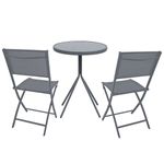 Juego de Jardín y Balcón Bistro 3 Piezas Mesa Redonda + 2 Sillas Plegables Gris