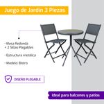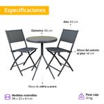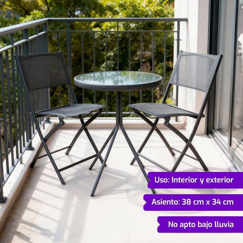 Incluye: 1 mesa redonda + 2 sillas plegables