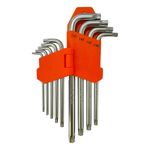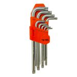 El juego de llaves Torx Broktools está diseñado para brindar máxima precisión y ajuste en tornillos con cabeza tipo estrella. Incluye 9 llaves Torx de distintas medidas, fabricadas en acero de alta resistencia para un uso profesional y duradero. Vienen organizadas en una funda plástica color naranja, resistente y práctica para mantener todo en orden y a mano.