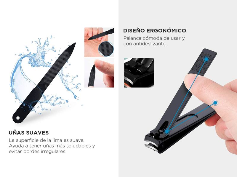 También es un gran kit que proporciona una experiencia relajada y agradable para trabajos pesados, manicura, pedicura, tijeras, cortauñas de viaje.