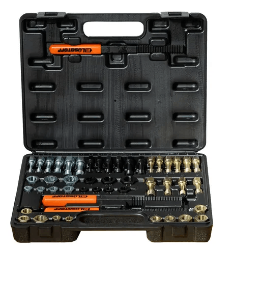 El Juego Reparador de Roscas de 49 Piezas Lüsqtoff L1046 es un set profesional diseñado para la reparación y restauración de roscas dañadas en componentes metálicos. Ideal para talleres mecánicos, automotrices y aficionados al bricolaje que requieren una solución eficiente y versátil.