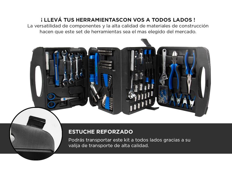 ¡Gadnic presenta su nueva línea de set de herramientas! Podrás transportar este kit a todos lados gracias a su diseño ergonómico y su valija de transporte de alta calidad de 24,5 x 11 x 25 cm. Su pequeño tamaño la hace ideal para llevarla sin problemas a cualquier lugar teniendo la tranquilidad de tener todas las herramientas que necesitas en cada momento. Con sus 189 piezas de cromo vanadio podrás solucionar cualquier altercado que se presente sin ningún inconveniente . La versatilidad de componentes y la alta calidad de materiales de construcción hacen que este set de herramientas sea el más elegido del mercado. ¡Llevá tus herramientas con vos a todos lados!