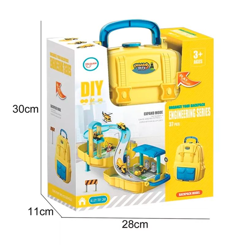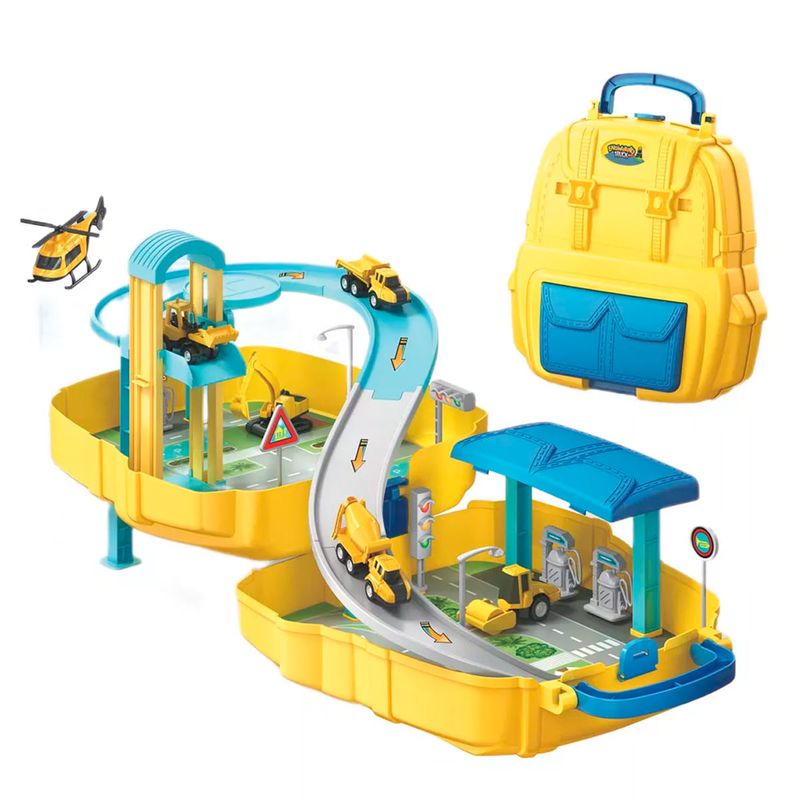 Características:- Diseño práctico: Mochila que se convierte en una base para una pista temática de construcción.