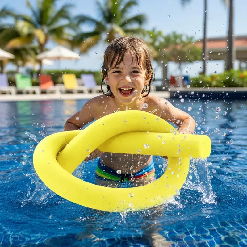 Fabricado en material flexible y resistente, este flotador es perfecto para acompañar juegos en la pileta, el mar o vacaciones, ayudando a la flotación y al aprendizaje en el agua.