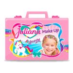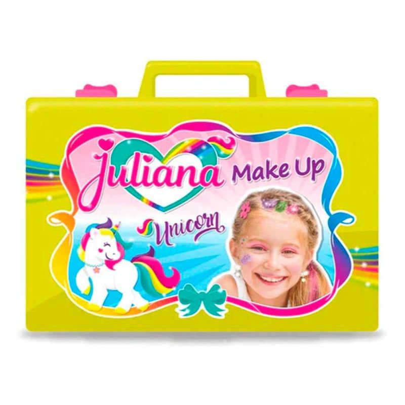 Para que juegues a lookearte como mas te guste. La valija grande de Make Up Unicorn, incluye paleta unicornio con sombras cremosas de colores, maquillaje con glitter, labial, esmalte, stickers para decorar tus uñas, hebillas, pulsera, esponja, aplicadores, y demás accesorios.