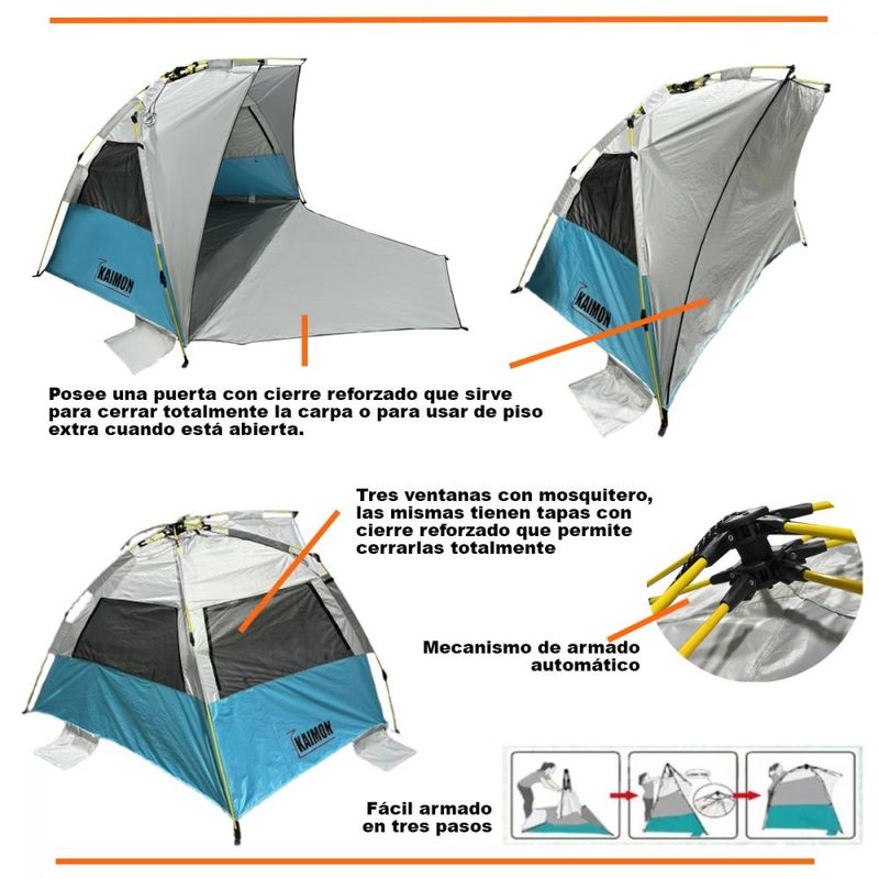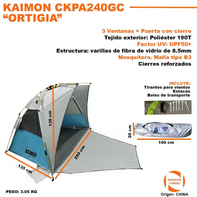 Incluye: Tiros para vientos - Estacas - Bolso de transporte