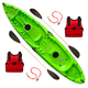 Kayak, 2 remos, 2 chaleco salvavidas y 2 pita para remo.