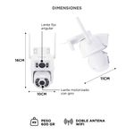 Detecta movimiento humano y lo sigue automáticamente, reduciendo falsas alarmas y mejorando la vigilancia. Su rotación de 355° horizontal y 90° vertical cubre amplios espacios sin dejar puntos ciegos.