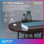 • T3C - Botón Inteligente: Utilice este botón inteligente para encender y apagar todo su sistema de sensores EZVIZ o presionarlo para enviar una alarma de emergencia. Es de tamaño mini y funciona con batería para ir a cualquier lugar que desee.