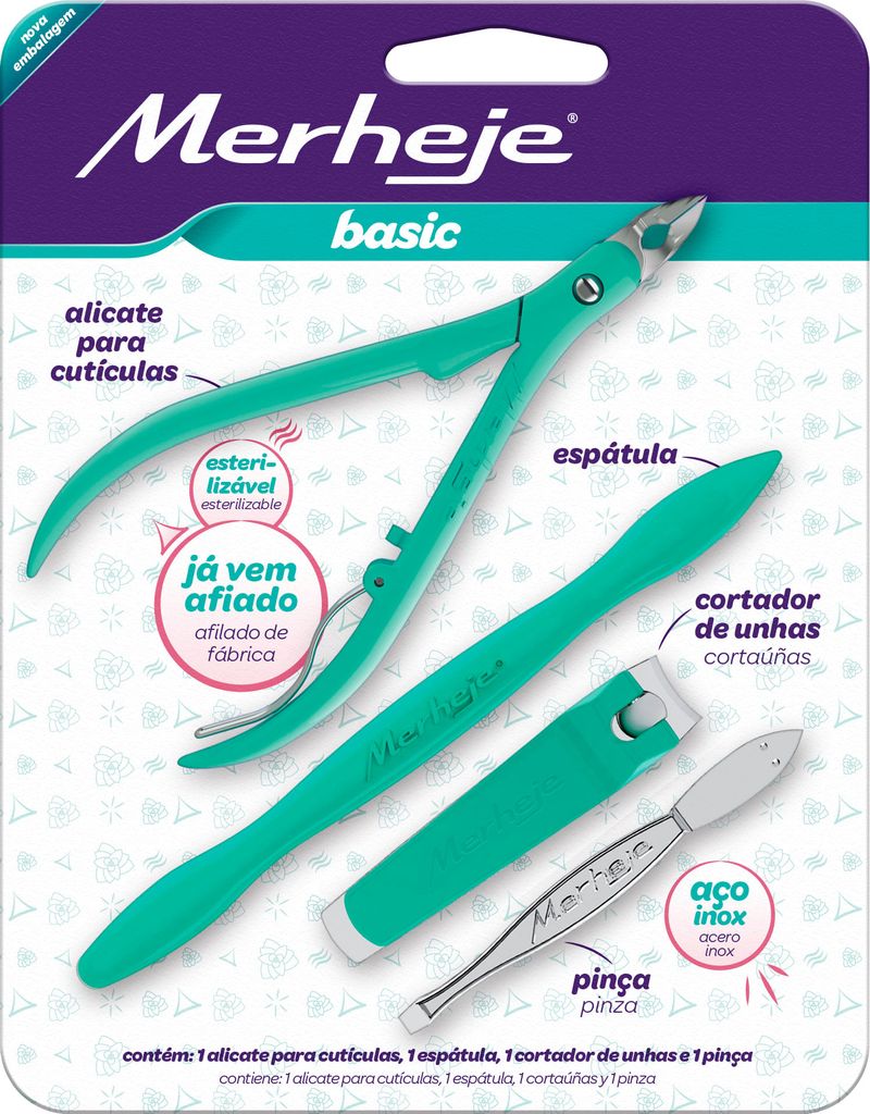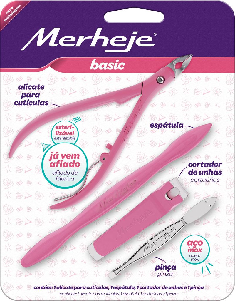 Contiene 1 alicate para cutículas, 1 espátula, 1 cortaúñas y 1 pinza.