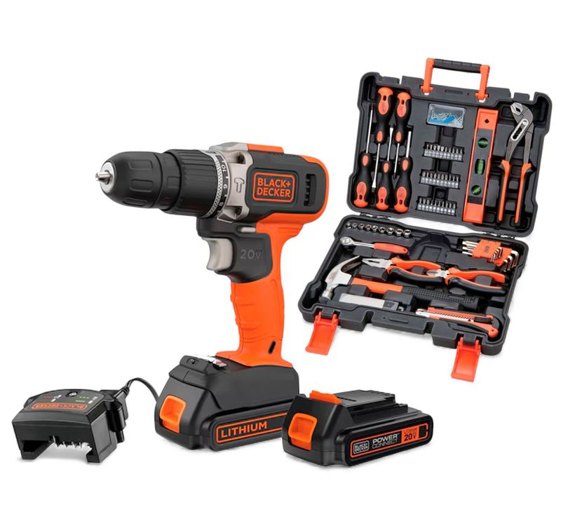 COMBO BLACK & DECKER TALADRO PERCUTOR INALAM + SET HERRAMIENTAS 152 PZS