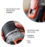 Este taladro percutor y destornillador te permite realizar trabajos con exactitud y calidad. Su diseño sin cables facilita su manejo y reduce la fatiga tras un uso prolongado, y su batería elimina las preocupaciones por la distancia a un enchufe o la longitud del cable.