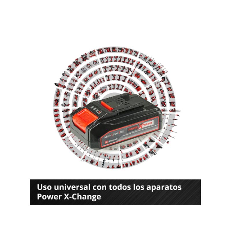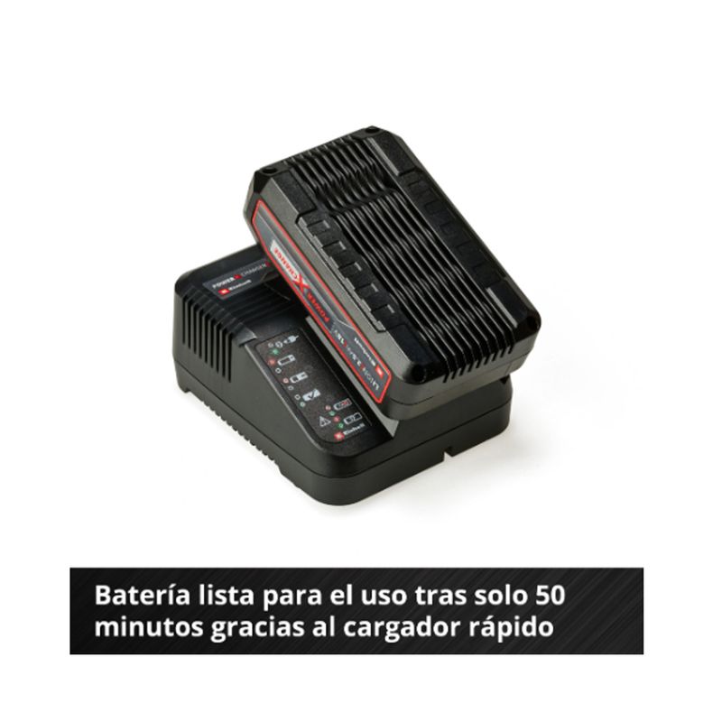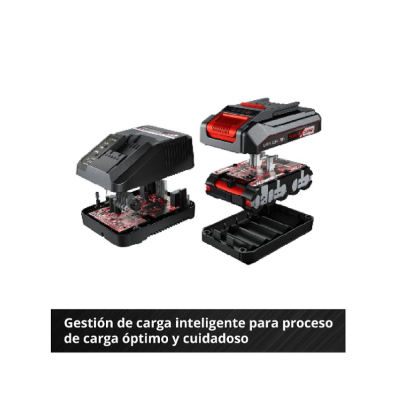El Starter Kit Einhell PXC 18V 2,5 Ah es la base ideal tanto para empezar a trabajar con el surtido Power X-Change como para ampliarlo. El Starter Kit con una batería Power X-Change de 18V y 2,5 Ah y el cargador rápido forman parte del sistema de baterías Power X-Change de Einhell, que se puede combinar sin límites. Las baterías Power X-Change de aplicación universal suministran energía y resistencia a todos los dispositivos de batería de toda la familia de productos en el jardín y en el taller. También los cargadores de esta gama son de aplicación universal para todas las baterías PXC. Las ventajas para el cliente son obvias: Con una batería y un cargador para todos los aparatos, no solo se ahorran costes considerables en la compra, sino que la posibilidad de aplicación universal protege el medio ambiente y, al mismo tiempo, ofrece flexibilidad en el hogar y en el jardín. Además, se evita el desorden y el caos que supone una variedad de baterías y cargadores para cada equipo. Además, esta batería de gran calidad resiste el efecto memoria y la autodescarga habitual de las baterías, por lo que proporciona una potencia alta de forma constante. La Power X-Change de 18 voltios y 2,5 Ah es una batería básica ideal que forma parte de la familia Power X-Change y también es adecuada para el uso con TWIN-PACK en aplicaciones de 36 V. El sistema activo de gestión de baterías ABS, controlado por el proceso, supervisa continuamente los parámetros de la batería mediante un microprocesador. Esto garantiza la máxima seguridad, un rendimiento óptimo del dispositivo, un tiempo de funcionamiento máximo y una vida útil máxima. El estado de carga actual se puede comprobar mediante una pantalla LED de 3 niveles. Debido a su construcción, la carcasa resiste el polvo, la corrosión y las influencias mecánicas. La empuñadura empotrada facilita la extracción fácil de la batería de todos los aparatos. El cargador rápido tiene un diseño compacto y, por lo tanto, ocupa poco espacio, y las orejas de elevación integradas facilitan el montaje del cargador en la pared. Gracias a la tecnología de carga rápida, los tiempos de carga son cortos y la batería se controla constantemente mediante una gestión de carga inteligente para proporcionar una carga óptima y la máxima seguridad. El modo de actualización permite reactivar las baterías muy descargadas. Toda la información actual del estado está disponible en la pantalla LED.