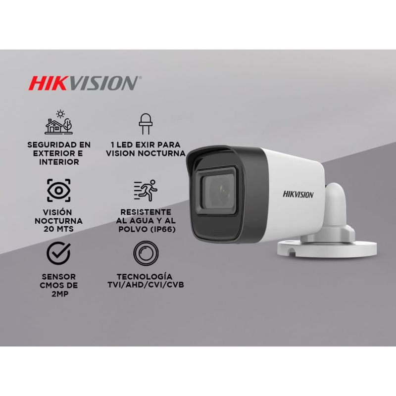 Cámara de seguridad Bullet Hikvision DS-2CE16D0T-EXIPF 2MP Interior Exterior IP67 - HIKV0003