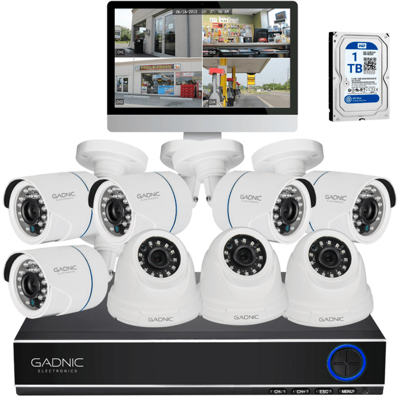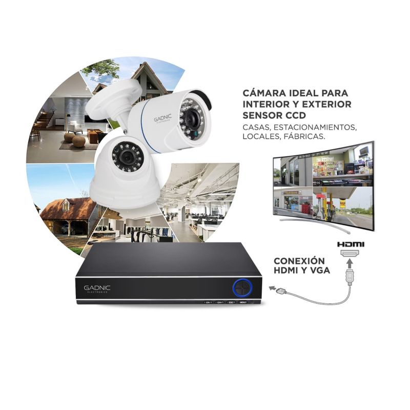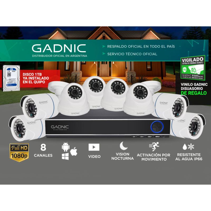La última versión del Kit de 8 Cámaras de seguridad GADNIC KP2P0040, es el kit más completo y fácil de instalar del mercado, cuenta con todo lo necesario para su instalación. Su DVR con configuración Ip de fácil acceso le permite a los usuarios visualizar las cámaras desde cualquier parte del mundo solo con descargar la App y escanear el código QR en la pantalla. Las cámaras Bullet IP66, soportan lluvias y granizo y permiten tener un total control del exterior e interior de la propiedad. Gracias a su función de activación por movimiento el KP2P0040 tiene la capacidad de emitir alertas al dispositivo móvil asociado y optimizar el espacio de grabado del Disco Rígido de 1Tb que ya viene instalado en el interior de DVR.