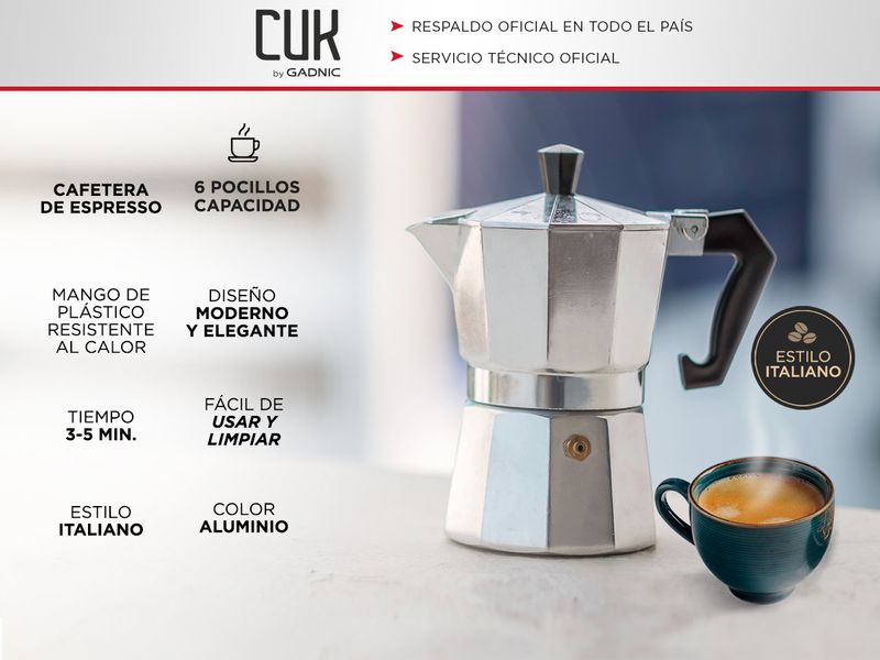 Cafetera De Aluminio Gadnic Moka Café Espresso 6 Tazas - MOKA6CUP