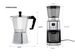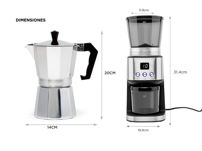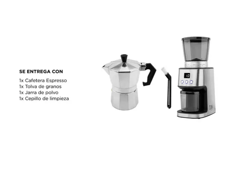 Ambos productos son fáciles de usar y limpiar. La cafetera de espresso requiere solo 3 a 5 minutos a baja o media temperatura, mientras que la molinera cuenta con un sistema "libre de atascos" y una fresa cónica de acero inoxidable que se puede quitar y limpiar fácilmente, gracias al cepillo incluido.