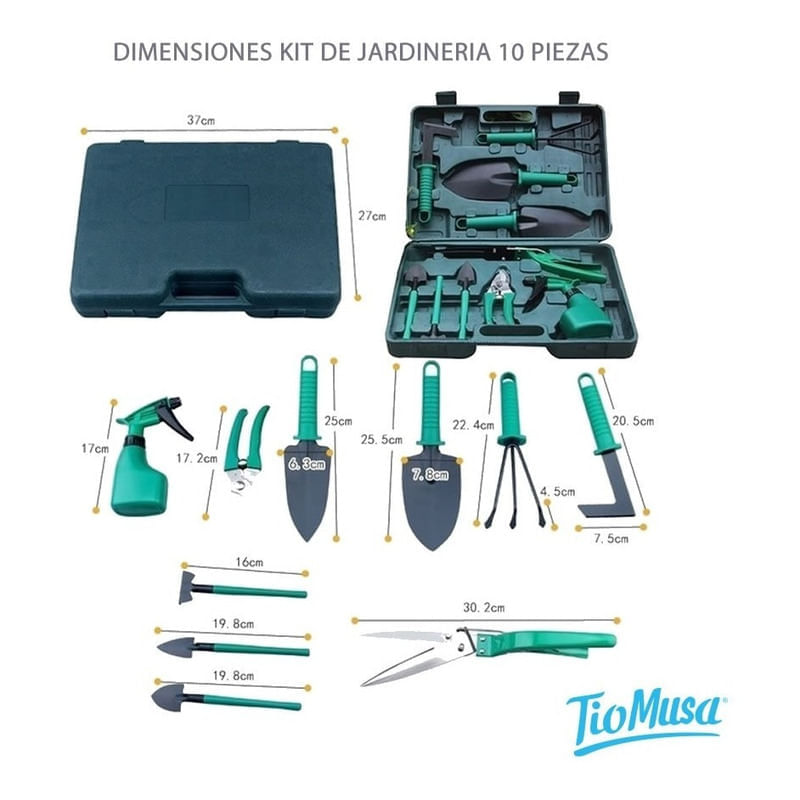 Kit De Jardineria Valija Set 10 Herramientas Jardin Verde