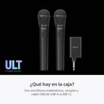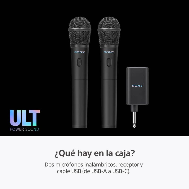 Perfecto cuando se combina con la serie ULT POWER SOUND. Agrega tu voz a la mezcla.Con una conectividad inalámbrica sencilla para parlantes seleccionados de la serie ULT POWER SOUND con entradas de micrófono, el ULTMIC1 eleva cualquier fiesta. El kit incluye dos micrófonos inalámbricos, además de un receptor, todos ellos de carga rápida y fáciles de usar, para que siempre estén listos cuando tengas ganas de hacer karaoke