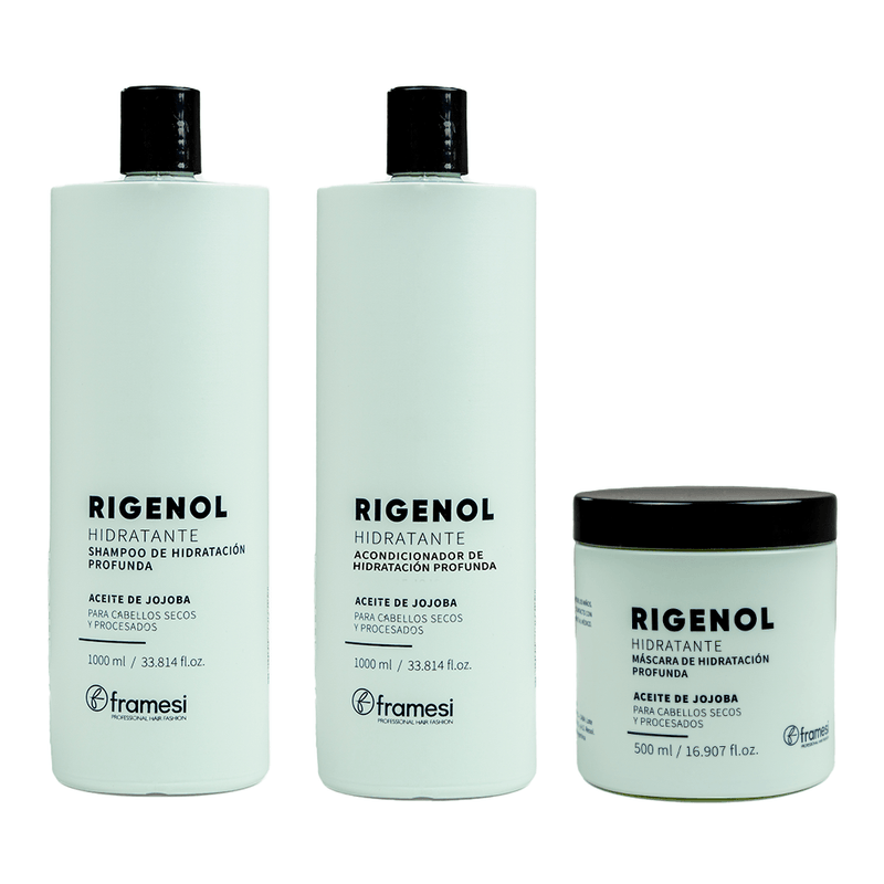 Kit Rigenol Hidratante Shampoo + Acond. x1000ml + Máscara x500ml Framesi
