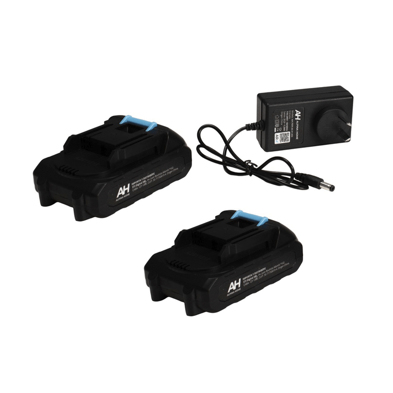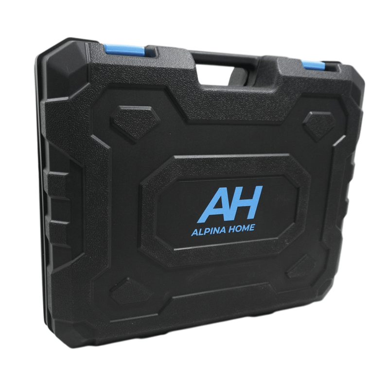 Incluye dos baterías de 21V 2Ah que te permiten mayor autonomía y continuidad de trabajo, junto con cargador de pared y un maletín resistente con trabas para transportar y mantener todo organizado.
