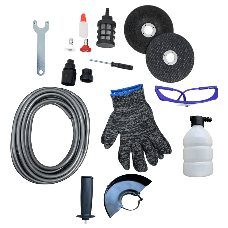 Con este kit podés perforar y atornillar, cortar madera, desbastar y cortar metal, y limpiar bicicletas, autos, herramientas o espacios exteriores, todo con un solo equipo compacto y potente.