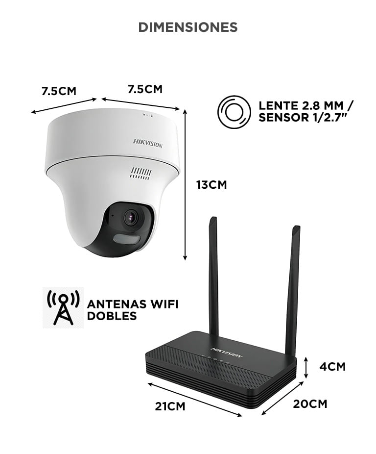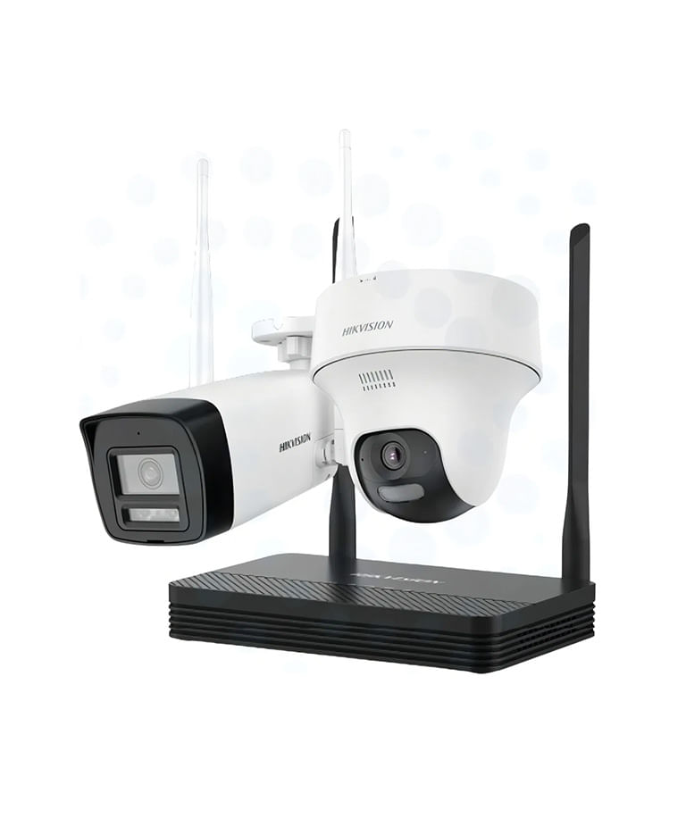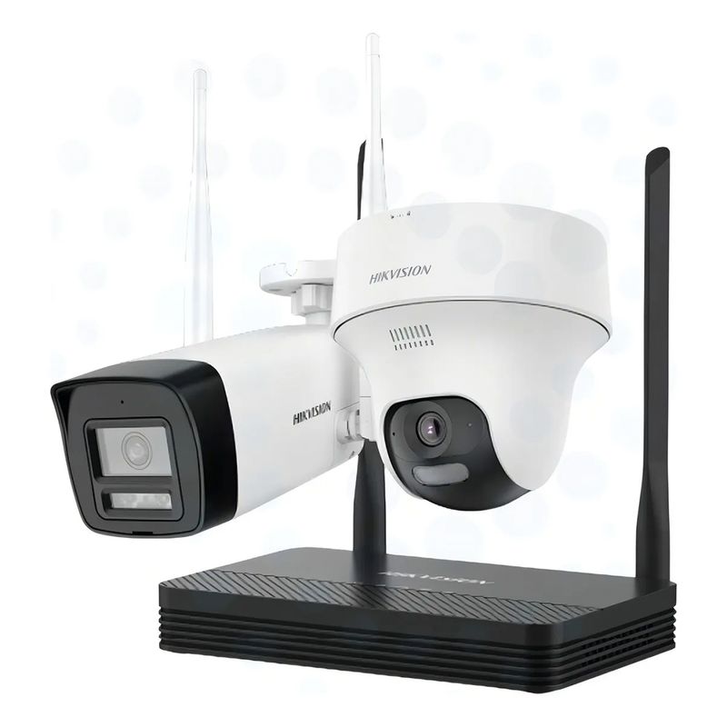 El Kit de Seguridad WiFi Hikvision Easy Link NKS424W02H ofrece una solución completa y moderna para proteger tus espacios. Incluye un grabador NVR inalámbrico y dos cámaras Full HD 4MP (una bullet y una torreta PT), listas para usar con una instalación rápida y sin cables.