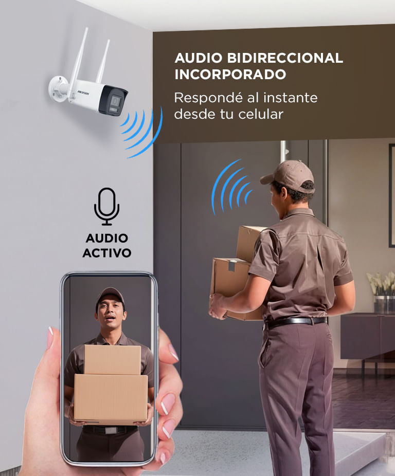 Mediante la app Hik-Connect, podés acceder a todas las funciones del sistema: agregar cámaras, visualizar en vivo, reproducir grabaciones, recibir alertas y comunicarte gracias al audio bidireccional. Todo desde tu smartphone o tablet.
