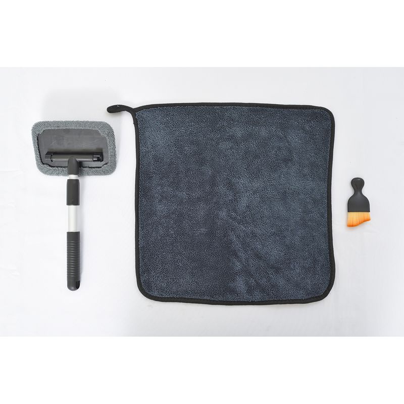 Kit de limpieza para auto. Inlcuye: Cepillo limpia parabrisas. Cepillo para limpiar interior de auto. Toalla de lavado y secado para auto. Cepillo ergonómico para limpiar vidrios y parabrisas del auto sin rayarlos. Ideal para mantener la visibilidad y el vehículo impecable.